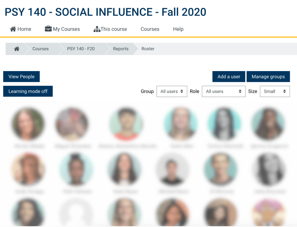 The first thing I do in every class is to memorize the names of my students and familiarize myself with their faces. In doing so, I try to get to know the person behind the name by checking in with them individually. For example, during lab sections as a teaching assistant in Research Methods and Statistics, I set time aside to go around the classroom and talk with each student as they work individually. Since not all students are comfortable raising their hands and asking for help, I proactively reach out to them first.